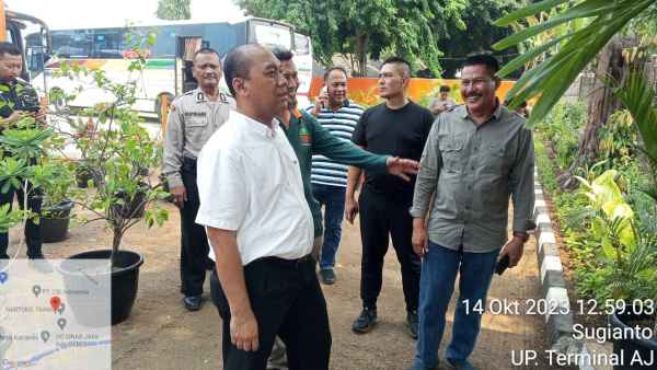 Uus datang bersama jajarannya guna memastikan persiapan Terminal Bus Kalideres dalam menghadapi Adipura 2023.