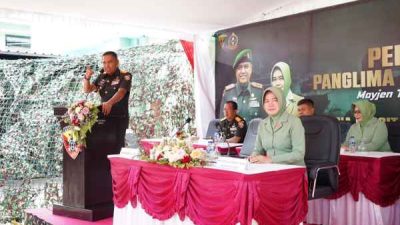 Next, the Kodal transfer ceremony was marked by the handing over of the battalion’s stumps and the signing of the Kodal transfer minutes, as well as witnessing the abilities of 741/GN soldiers in military self-defense demonstration activities and Sparko gymnastics. At the end of the activity, the military commander and his entourage visited the base, followed by a briefing for all soldiers and Mrs. Persit Battalion 741/GN.
