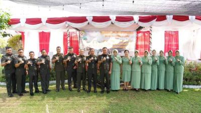 Tiba di Makodim 1617/Jembrana, Pangdam IX/Udayana dan Ketua Persit KCK PD IX/Udayana berserta rombongan disambut oleh Dandim 1617/Jembrana Letkol Inf Teguh Dwi Raharja, S.Sos., beserta perwira staf dilanjutkan pengalungan Kain songket kas Jembrana dan menerima jajar kehormatan.