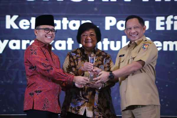 Menteri Lingkungan Hidup dan Kehutanan, Siti Nurbaya, menerima penghargaan tersebut secara langsung dari Menteri PANRB, Abdullah Azwar Anas di Jakarta, Selasa (21/11).