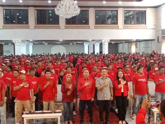 Sedikitnya ada 1.500 orang para relawan Nyumarno dari Partai PDI Perjuangan, dikumpulkan hari ini, mereka diberikan pengarahan untuk membantu memenangkan bacapres Ganjar Mahfud yang didukung dalam sebuah bintek.