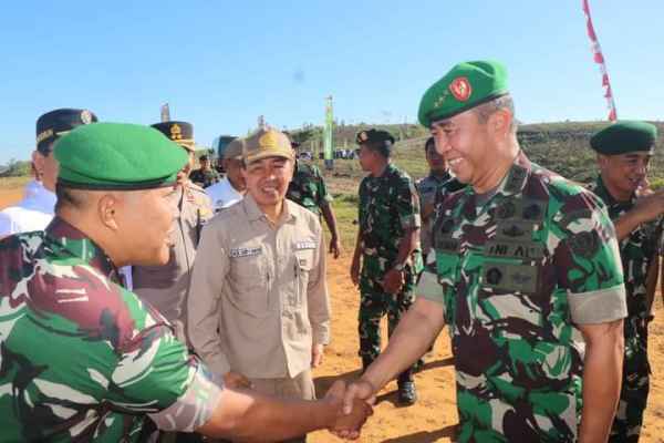 SUKABUMI – Sekretaris Daerah Kabupaten Sukabumi Ade Suryaman mendampingi Kunjungan Kerja (Kunker) Wakil Kepala Staf Angkatan Darat (Wakasad), Letjen TNI Arif Rahman, dalam rangka meninjau program gerakan ketahanan pangan dan penghijauan lahan di Ketahanan Pangan (Hanpangan) Kostrad, Desa Ciemas, Kecamatan Ciemas, Kabupaten Sukabumi, Rabu, 20 Desember 2023.