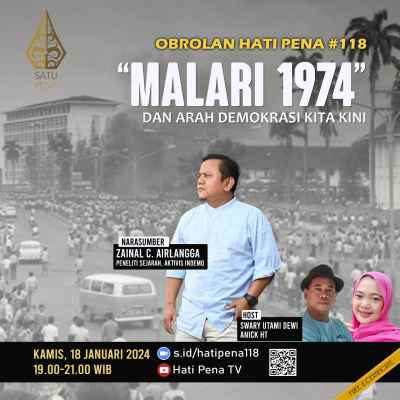 Obrolan Hati Pena #118 tentang Malari 1974 itu akan berlangsung di Jakarta, pada Kamis malam, 18 Januari 2024, pukul 19.00-21.00 WIB.