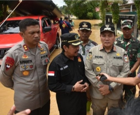 Ketua DPRD Sarolangun Tontawi Jauhari saat meninjau posko penanggulangan bencana hidrometeorologi bersama forkopimda