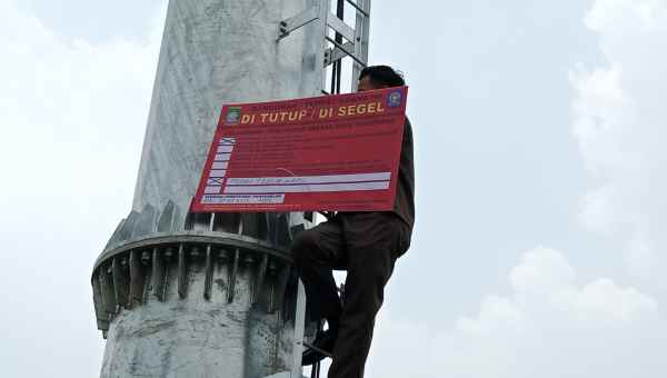 “Tim pun menyegel bangunan tower tersebut dengan 1 papan segel dan di penyitaan 1 set kunci panel listrik. Sanksi administrasi dijalankan atas dasar pelanggaran peraturan daerah yang dilakukan oleh pemilik atau pengelola bangunan tower tersebut,” ucapnya.