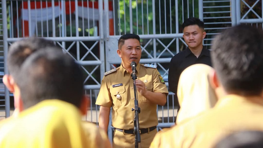 SUKABUMI- Wakil Bupati Sukabumi, H. Andreas, memimpin apel pagi perdana bagi pegawai Sekretariat Daerah di Halaman Kantor Sekretariat Daerah, Kabupaten Sukabumi, Palabuhanratu, Senin (24/2/2025).