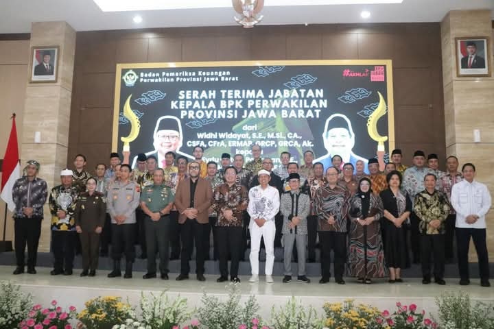 SUKABUMI- Bupati Sukabumi H. Asep Japar bersama Ketua DPRD Kab. Sukabumi, menghadiri Acara Serah Terima Jabatan Kepala BPK Perwakilan Provinsi Jawa Barat dari kepala sebelumnya Widhi Widayat kepada kepala yang baru Eydu Oktain Panjaitan. Sertijab berlangsung di Auditorium BPK Perwakilan Jawa Barat, Kamis (13/03/2025).