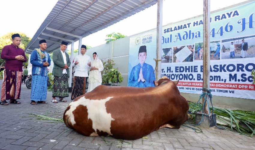 “Semoga ini dapat membawa keberkahan dan kebahagiaan di Hari Raya Idul Adha ini. Tentunya juga semoga dapat memperkuat rasa cinta kita kepada Allah SWT, serta memberikan pembelajaran tentang pengorbanan dan solidaritas sosial,” ungkap Ibas dalam sambutannya.