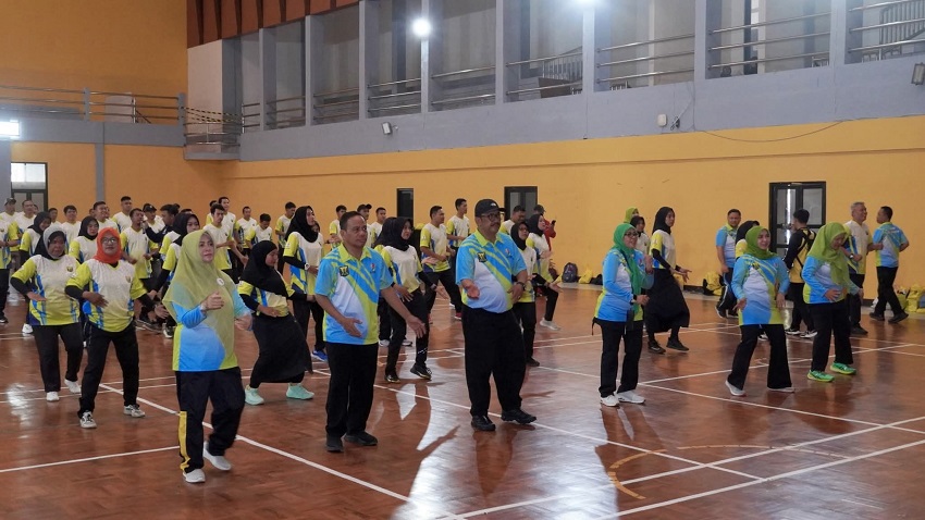 Latihan Senam Waringkas, Bupati Asjap Berbaur dengan Guru Olahraga Sekabupaten Sukabumi