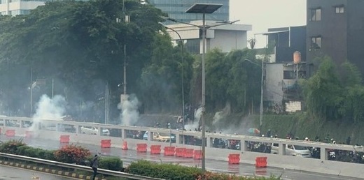 Kericuhan membuat massa terpencar ke berbagai arah. Sebagian mundur ke arah jembatan Ladokgi, sementara yang lain merangsek ke Tol Dalam Kota hingga membuat lalu lintas menuju Slipi dan Cawang lumpuh. Polisi terpaksa memutarbalikkan kendaraan dari arah Semanggi untuk mengurai kemacetan.
