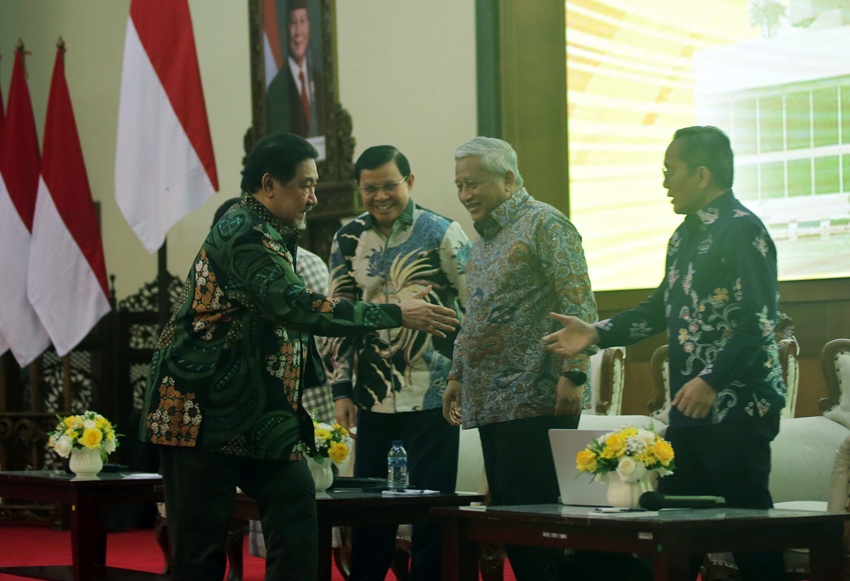 Ketua Fraksi Golkar MPR RI, Melchias Markus Mekeng Bersama Wakil Ketua DPR RI, Kahar Muzakir, Anggota DPR RI Fraksi Golkar Firman Soebagyo, dan Sekjen MPR RI Siti Fauziah saat acara Sarasehan Nasional Fraksi Partai Golkar MPR RI di Nusantara IV, Gedung Parlemen, Senayan, Jakarta, Jumat (8/8/2025). Sarasehan Nasional Fraksi Partai GOLKAR MPR RI dengan tema “Merumuskan Kembali Anggaran Pendidikan Guna Mewujudkan Amanat Konstitusi Menuju Indonesia Emas 2045”.