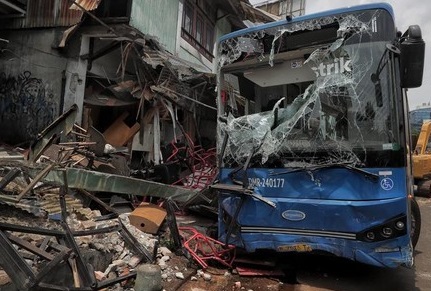 Insiden ini melibatkan bus Transjakarta rute Pulogadung–Galunggung. Berdasarkan keterangan saksi, bus sempat melaju dari arah selatan sebelum akhirnya menabrak toko di tepi Jalan Raya Minangkabau.*