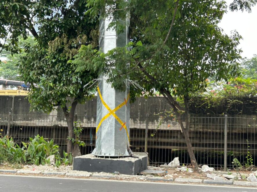 JAKARTA — Polemik keberadaan menara telekomunikasi Base Transceiver Station (BTS) setinggi sekitar 32 meter di Jalan Outer Ring Road, RT 005/RW 002, Kelurahan Duri Kosambi, Kecamatan Cengkareng, Jakarta Barat memasuki babak baru. Setelah mencuat ke publik melalui berbagai pemberitaan media massa, akhirnya Satuan Polisi Pamong Praja (Satpol PP) Jakarta Barat memasang garis larangan operasional pada instalasi tersebut, Selasa (2/12/2025). Garis tersebut menjadi tanda bahwa segala bentuk aktivitas operasional dan konstruksi pada menara itu dihentikan sementara.