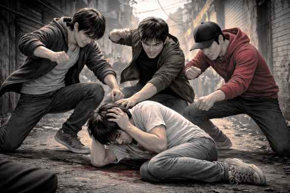 Gambar ilustrasi pengeroyokan oleh Oknum Ormas,.(Dok.AI)