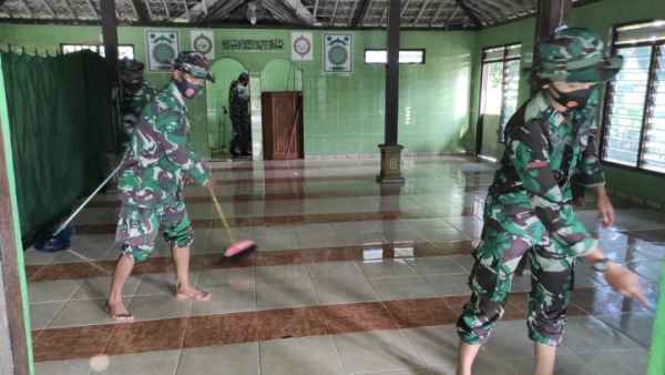 Rutinitas, Satgas TMMD Bojonegoro Bersihkan Masjid Desa Ngrancang